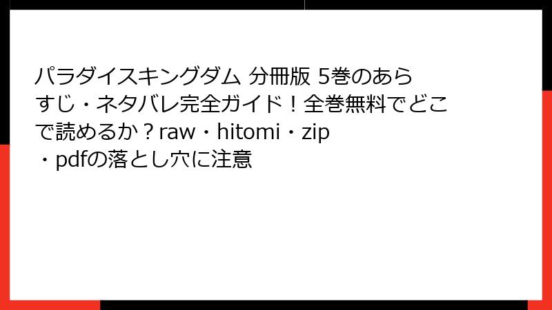 パラダイスキングダム 分冊版 5巻のあらすじ・ネタバレ完全ガイド!全巻無料でどこで読めるか?raw・hitomi・zip・pdfの落とし穴に注意