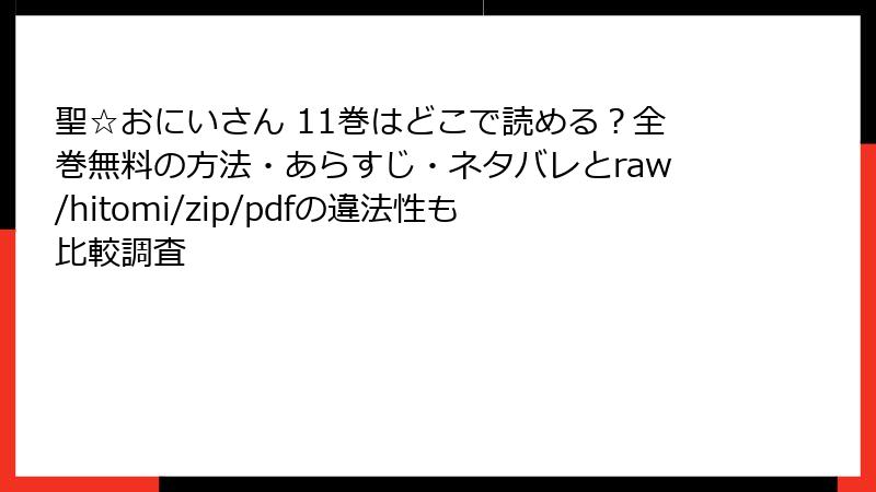 raw、hitomi、zip、pdf、漫画バンクなどの海賊版サイトで『聖☆おにいさん 11巻』を読むのは、法的・セキュリティ・プライバシー面で多大なリスクを伴います。これらを避け、正規の電子書籍サービスを利用しましょう。無料試し読みや割引キャンペーンを活用すれば、安全に楽しめます。リスクを理解し、賢い選択を心がけてください。