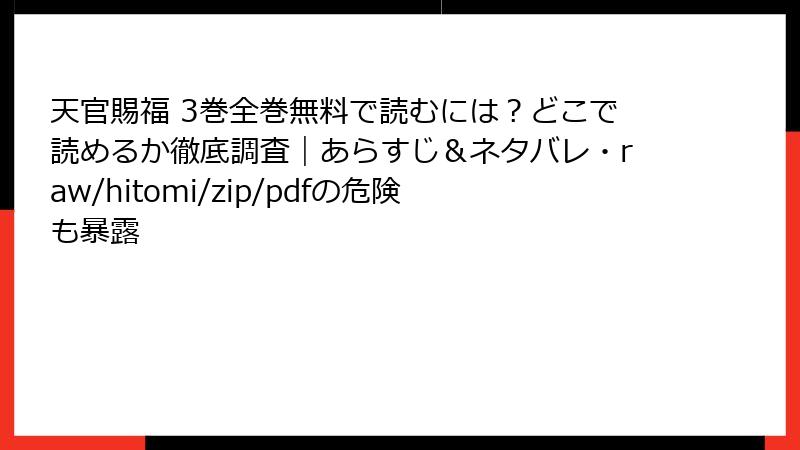人気のBLファンタジー作品「天官賜福」を、raw/hitomi/zip/pdf/漫画バンクなどの海賊版サイトで読むのは一見手軽ですが、さまざまなリスクが伴います。この記事では、そうした海賊版サイトを利用する際の潜在的な危険を詳しく解説します。法的問題からセキュリティの脅威まで、幅広い側面から考察し、正規ルートでの読書をおすすめします。海賊版はクリエイターの権利を侵害する行為であり、避けるべきです。
