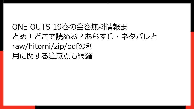 ONE OUTS 19巻の全巻無料情報まとめ!どこで読める?あらすじ・ネタバレとraw/hitomi/zip/pdfの利用に関する注意点も網羅
