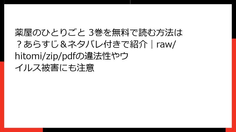 薬屋のひとりごと 3巻を無料で読む方法は?あらすじ&ネタバレ付きで紹介|raw/hitomi/zip/pdfの違法性やウイルス被害にも注意