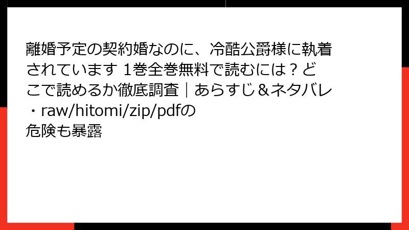 離婚予定の契約婚なのに、冷酷公爵様に執着されています 1巻全巻無料で読むには?どこで読めるか徹底調査|あらすじ&ネタバレ・raw/hitomi/zip/pdfの危険も暴露