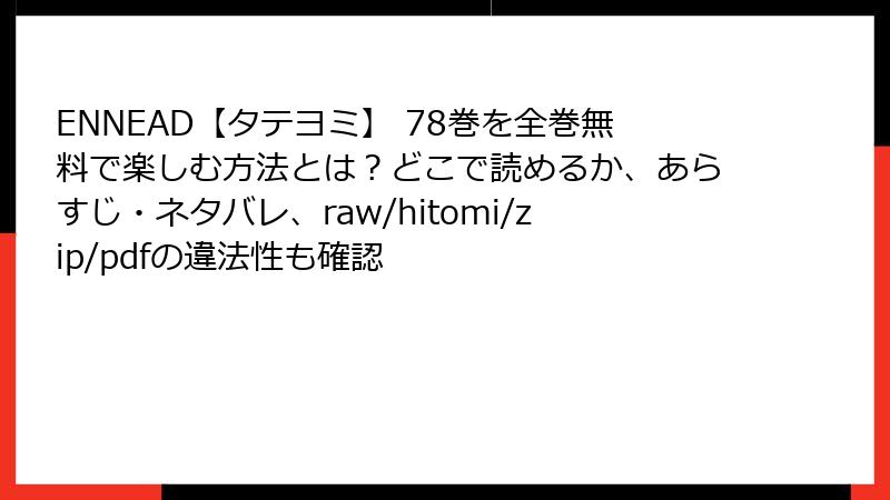 人気のBLマンガ『ENNEAD【タテヨミ】』は、エジプト神話を基調とした魅力的なストーリーで多くのファンを魅了しています。しかし、正規のプラットフォーム以外で、raw/hitomi/zip/pdf/漫画バンクなどの海賊版サイトを利用して読む行為は、さまざまなリスクを伴います。この記事では、そうした海賊版サイトの利用がもたらす法的、セキュリティ、プライバシー、品質、倫理的、経済的なリスクを詳しく解説します。海賊版は一見無料で便利に見えますが、潜在的な危険を理解し、正規ルートを選ぶ重要性を考えてみましょう。