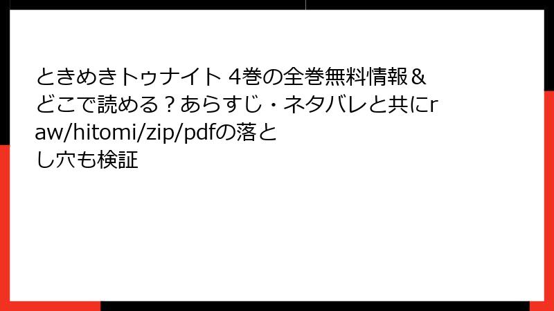 ときめきトゥナイト 4巻の全巻無料情報&どこで読める?あらすじ・ネタバレと共にraw/hitomi/zip/pdfの落とし穴も検証