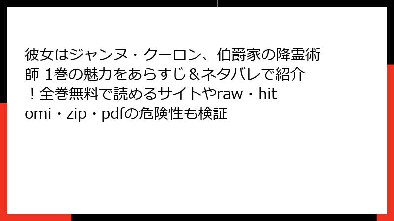 - 彼女はジャンヌ・クーロン、伯爵家の降霊術師 1巻 あらすじ