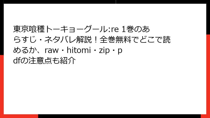 注意点として、配信停止の可能性や地域制限がある場合があります。日本国内からのアクセスを前提にしています。また、著作権を尊重し、正規サービスを利用しましょう。これで「東京喰種:re」1巻を快適に楽しめます。