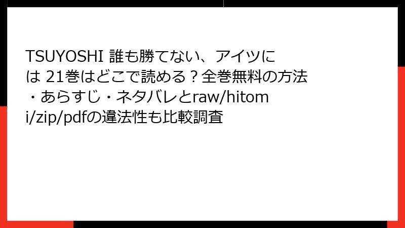- TSUYOSHI 誰も勝てない、アイツには 21巻 を海賊版サイトで読むリスク