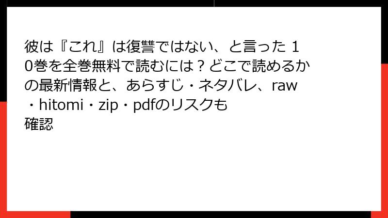 復讐サスペンスの人気作『彼は『これ』は復讐ではない、と言った』の10巻は、電子書籍として複数のサービスで配信されています。この記事では、コミックシーモア、ブックライブ、まんが王国、ebookjapan、Renta!、めちゃコミック、ピッコマ、LINEマンガなどの主なプラットフォームを調査し、どこで読めるかを詳しく解説します。価格や無料試し読みの有無も含めて、選び方のポイントを紹介します。