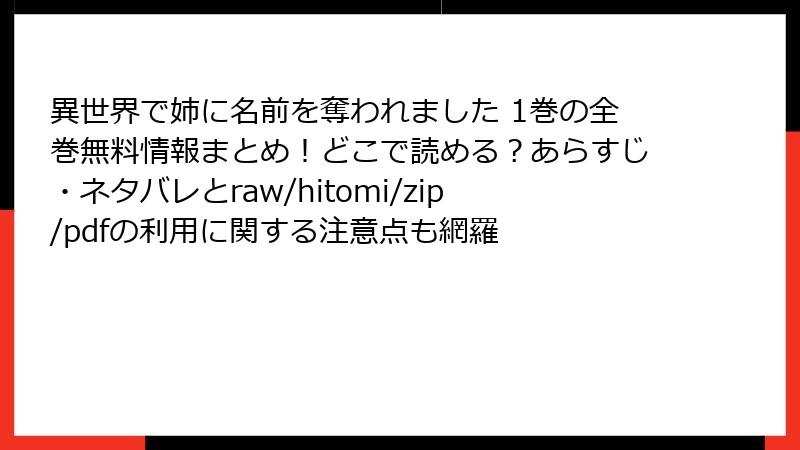 海賊版サイトで『異世界で姉に名前を奪われました』を「タダ読み」するのは、一見お得に見えますが、実際には「時間・お金・信用・安心」を失うギャンブルです。合法的な方法(電子書籍購入、コミックアプリの無料分、レンタル、図書館など)を選ぶことで、作者を応援しつつ安全に楽しむことができます。