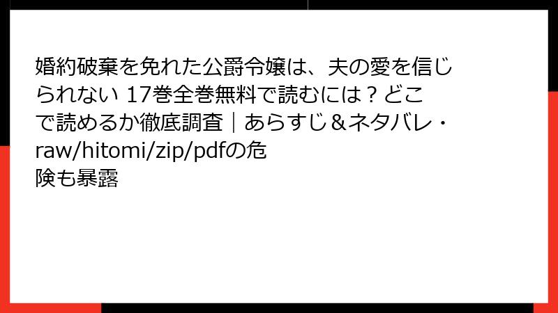 - 婚約破棄を免れた公爵令嬢は、夫の愛を信じられない 17巻:不信の解消を電子で
