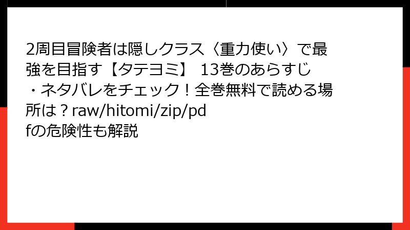ループファンタジー『2周目冒険者は隠しクラス〈重力使い〉で最強を目指す【タテヨミ】』の13巻は、タテヨミ形式。HykeComic作品で、複数サービス配信。以下詳細。情報は2026年1月時点のものです。