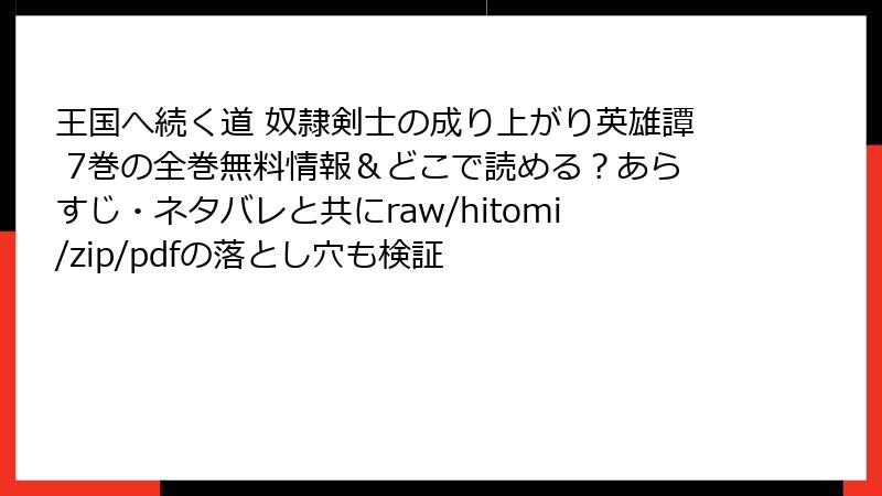 - 王国へ続く道 奴隷剣士の成り上がり英雄譚 7巻 あらすじ
