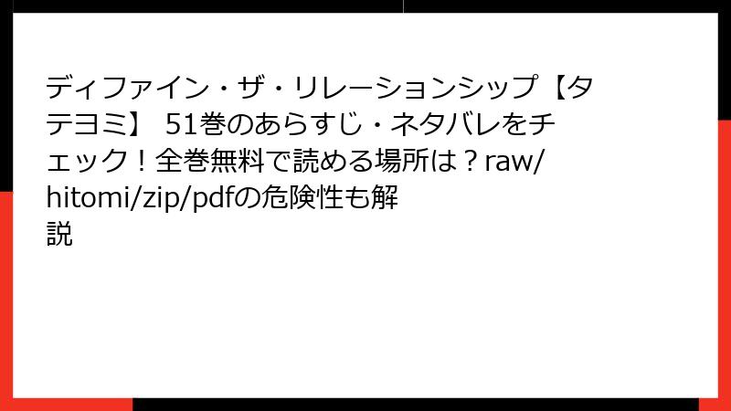 ディファイン・ザ・リレーションシップ【タテヨミ】を海賊版サイトで読むリスク:詳細解説
