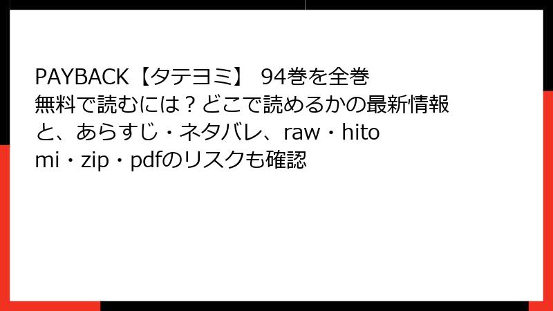 PAYBACK【タテヨミ】 94巻を全巻無料で読むには?どこで読めるかの最新情報と、あらすじ・ネタバレ、raw・hitomi・zip・pdfのリスクも確認