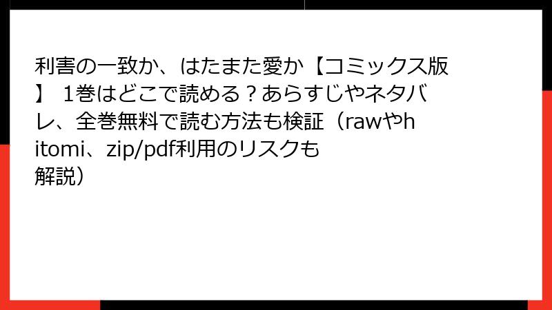 「利害の一致か、はたまた愛か」1巻をraw/hitomi/zip/pdf/漫画バンクなどの海賊版サイトで読むリスクを徹底解説