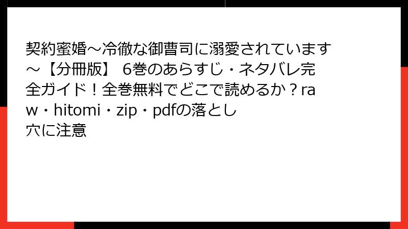 - 契約蜜婚~冷徹な御曹司に溺愛されています~【分冊版】 6巻