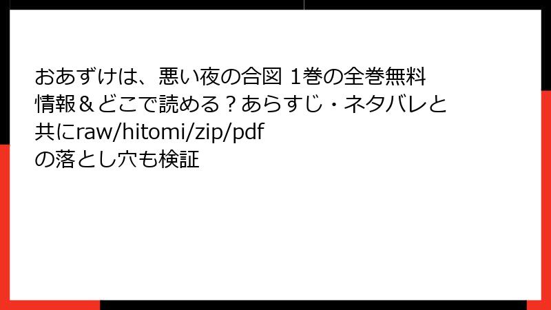 おあずけは、悪い夜の合図 1巻 海賊版サイトで読むリスクとは?