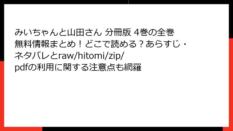 みいちゃんと山田さん 分冊版 4巻の全巻無料情報まとめ!どこで読める?あらすじ・ネタバレとraw/hitomi/zip/pdfの利用に関する注意点も網羅