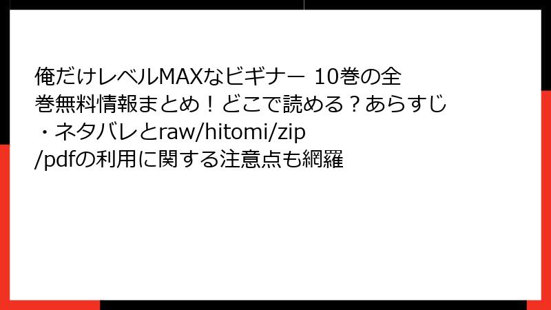 『俺だけレベルMAXなビギナー』の10巻(41~50話相当)では、主人公・鈴木裕人が試練の塔3階の攻略を本格的に進め、クライマックスを迎えます。ゲーム知識を活かした無双ぶりが光る一方で、新たな協力の可能性も示唆されます。この記事では、詳細なネタバレを交えながらストーリーを解説します。未読の方は注意してください。