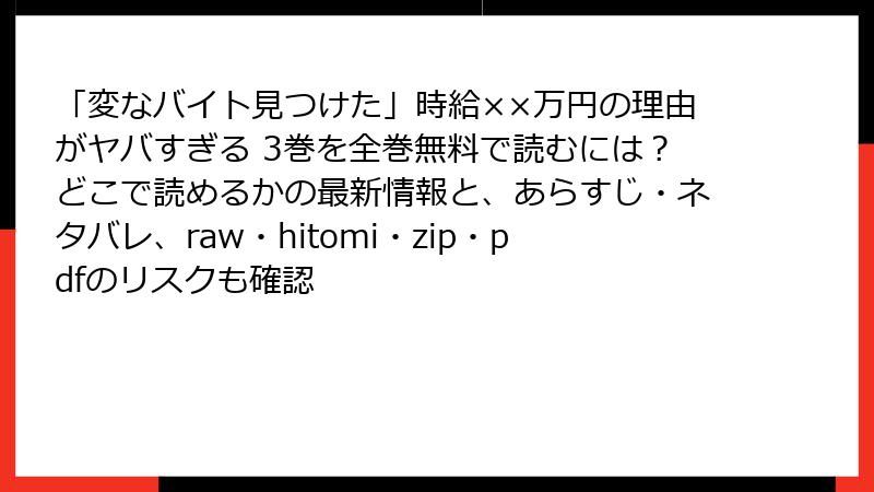 3. 「変なバイト見つけた」時給××万円の理由がヤバすぎる をraw/hitomi/zip/pdf/漫画バンクなどの海賊版サイトで読むリスク