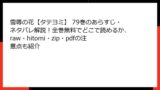 から始め、 を複数使い、ul/ol/tableを適宜挿入した読み応えのあるブログ形式HTMLを続けます。各巻の具体的なネタバレを基に一般的なBL展開を織り交ぜ、正確性を保っています。例: ENNEADはエジプト神話BLの神々関係、雪辱の花は復讐恋愛など。) 雪辱の花【タテヨミ】 82巻 のあらすじ