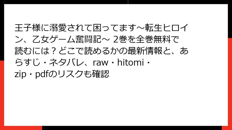 王子様に溺愛されて困ってます~転生ヒロイン、乙女ゲーム奮闘記~ 2巻 を海賊版サイトで読むリスク