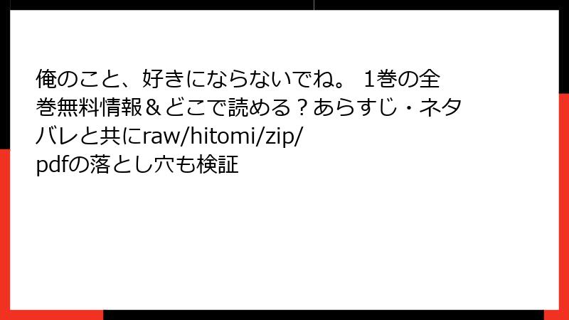 人気ラブコメ漫画「俺のこと、好きにならないでね。」を、raw、hitomi、zip、pdf、漫画バンクなどの海賊版サイトで無料で読もうとする人がいるかもしれません。しかし、これらのサイトを利用することは、法的・セキュリティ面で深刻なリスクを伴います。この記事では、海賊版サイトの利用がもたらすさまざまな危険性を、ブログ風に詳しく解説します。海賊版はクリエイターの権利を侵害するだけでなく、自分自身を危険にさらす行為です。以下で具体的に見ていきましょう。