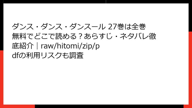 人気バレエ漫画「ダンス・ダンス・ダンスール」を、raw、hitomi、zip、pdf、漫画バンクなどの海賊版サイトで読むことは、一見手軽に思えるかもしれません。しかし、これらのサイトを利用する行為には、さまざまな深刻なリスクが伴います。この記事では、法的な問題からセキュリティ面、倫理的な側面までを詳しく解説します。海賊版の利用は、短期的な利便性を上回るデメリットが多く、強くおすすめできません。以下で、各リスクを深掘りしていきましょう。