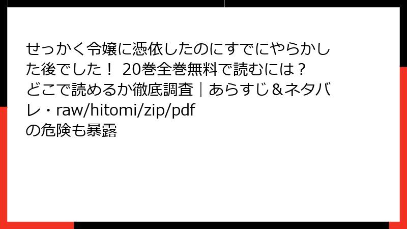 せっかく令嬢に憑依したのにすでにやらかした後でした! をraw/hitomi/zip/pdf/漫画バンクなどの海賊版サイトで読むリスク
