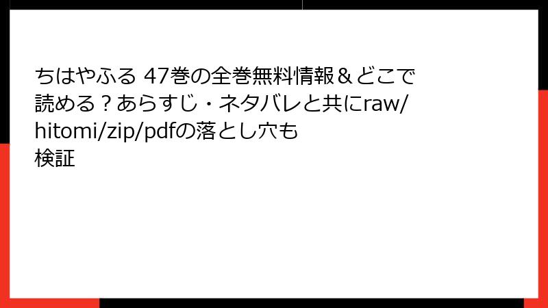 人気漫画「ちはやふる」の47巻を、raw/hitomi/zip/pdf/漫画バンクなどの海賊版サイトで読むことは、一見手軽に思えるかもしれませんが、さまざまな深刻なリスクを伴います。この記事では、そうした海賊版サイト利用の危険性を詳しく解説します。法的問題からセキュリティの脅威、倫理的な側面までを掘り下げ、なぜ正規ルートで楽しむべきかを考えていきましょう。海賊版は作者や業界を害するだけでなく、利用者自身にも大きな損害を与える可能性があります。