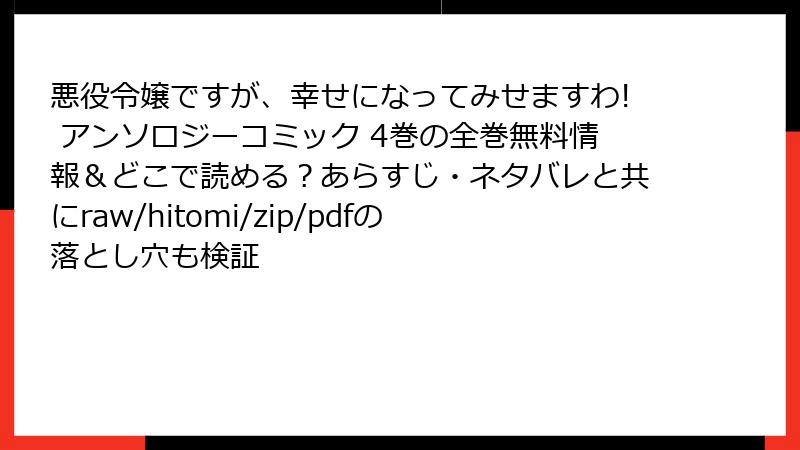 悪役令嬢ですが、幸せになってみせますわ! アンソロジーコミック 4巻を海賊版サイトで読むリスク