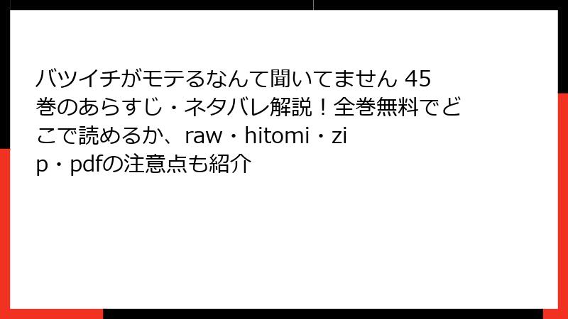 「バツイチがモテるなんて聞いてません」は、35歳のバツイチ女性・小野和葉が主人公の年の差恋愛漫画です。夫の不倫が原因で離婚した和葉は、職場で出会った22歳の新入社員・満井絢斗からアプローチを受け、交際を始めます。しかし、和葉の不妊が発覚したことで、絢斗の将来を考えて一方的に別れを告げます。45巻は、この別れの後の和葉の新章を描いた重要なエピソードです。和葉は心機一転を図り、転職を決意。新しい職場でキャリアウーマンとして再スタートを切ります。