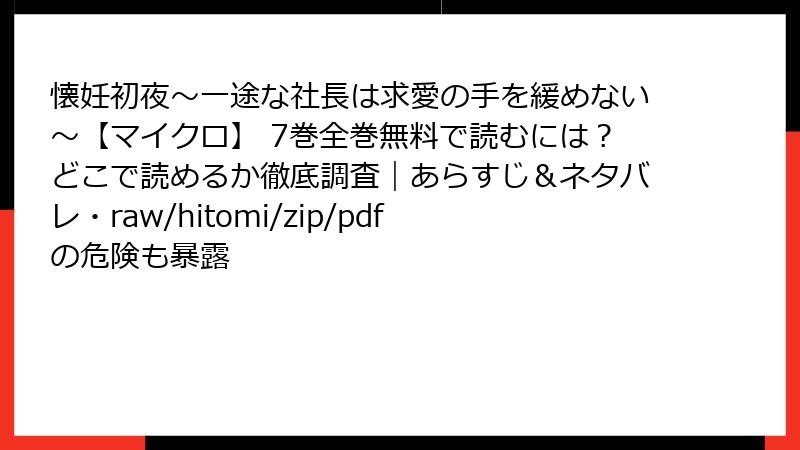懐妊初夜~一途な社長は求愛の手を緩めない~【マイクロ】 7巻 を海賊版サイトで読むリスク