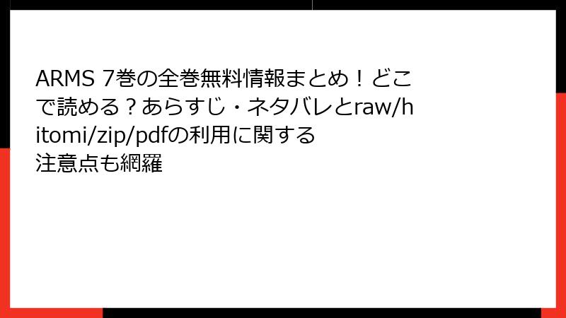 人気漫画『ARMS』をraw、hitomi、zip、pdf、漫画バンクなどの海賊版サイトで無料で読もうとする人は少なくありません。しかし、これらのサイトを利用することは法的、セキュリティ、経済的な面で深刻なリスクを伴います。この記事では、そんな海賊版サイトの危険性を詳しく解説します。違法行為を避け、正規ルートで楽しむことを強くおすすめします。