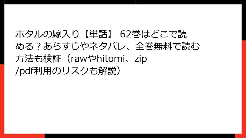 人気漫画「ホタルの嫁入り」などの作品を、raw、hitomi、zip、pdf、漫画バンクのような海賊版サイトで無料で読もうとする人は少なくありません。しかし、これらのサイトを利用することは、さまざまな深刻なリスクを伴います。この記事では、法的側面からセキュリティ、プライバシー、倫理的な問題までを詳しく解説します。海賊版サイトの利用は避け、合法的な手段を選ぶことを強くおすすめします。