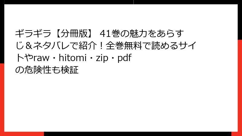 結論として、raw/hitomi/zip/pdf/漫画バンクなどの海賊版は、短期的な「得」を得る代わりに、長期的な「損失」を背負う選択です。「ギラギラ」の熱い世界を、心置きなく楽しむために、合法的な方法を選びましょう。作品を愛するファンが増えれば、もっと素晴らしい続編が生まれるはず。安全で豊かな漫画ライフを!