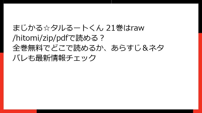 まじかる☆タルるートくん 21巻はraw/hitomi/zip/pdfで読める?全巻無料でどこで読めるか、あらすじ&ネタバレも最新情報チェック