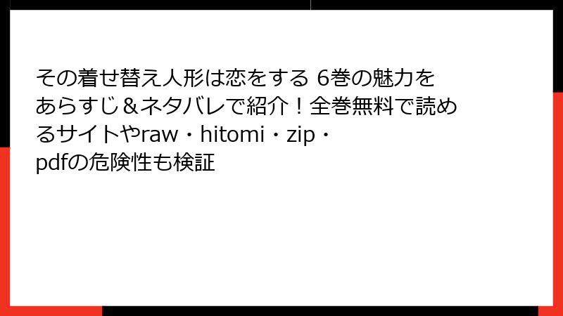 まとめると、raw/hitomi/zip/pdf/漫画バンクなどで『その着せ替え人形は恋をする』を読むのは、法的罰則、ウイルス感染、業界崩壊のトリプルリスク。無料の魅力に負けず、ファンとして正しい選択を。コスプレのように、自分を「着せ替えて」守りましょう! この記事が、あなたの安全な漫画ライフの一助になれば幸いです。