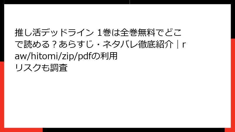 ※推し活の熱いファンとして、さえのように「推しのためなら何でも!」と思う気持ちは痛いほどわかります。でも、海賊版サイトで『推し活デッドライン』を読むのは、推し活の「デッドライン」を自ら超える行為。法的・セキュリティ・倫理的リスクが山積みです。無料の誘惑に負けず、正しい楽しみ方を学びましょう。