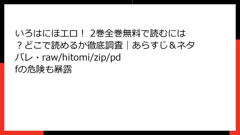 人気のラブコメ漫画「いろはにほエロ!」の2巻を、raw、hitomi、zip、pdf、漫画バンクなどの海賊版サイトで無料で読もうと考える人もいるかもしれません。しかし、これらのサイトを利用することは、さまざまな深刻なリスクを伴います。この記事では、法的側面からセキュリティ、倫理的な問題まで詳しく解説します。海賊版サイトの利用は避け、正規の手段で楽しむことを強くおすすめします。