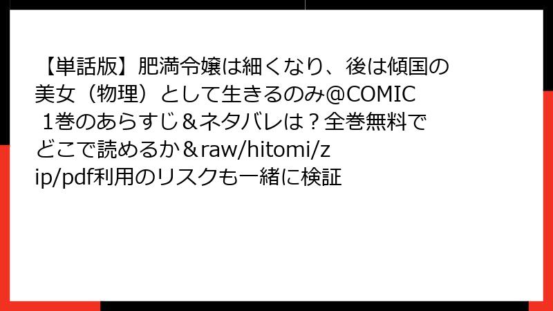 【単話版】肥満令嬢は細くなり、後は傾国の美女(物理)として生きるのみ@COMIC 1巻を海賊版サイトで読むリスク詳解