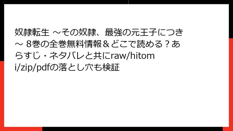 奴隷転生 ~その奴隷、最強の元王子につき~ 8巻の全巻無料情報&どこで読める?あらすじ・ネタバレと共にraw/hitomi/zip/pdfの落とし穴も検証