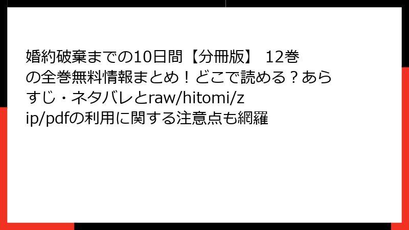婚約破棄までの10日間【分冊版】 12巻 をraw/hitomi/zip/pdf/漫画バンクなどの海賊版サイトで読むリスク