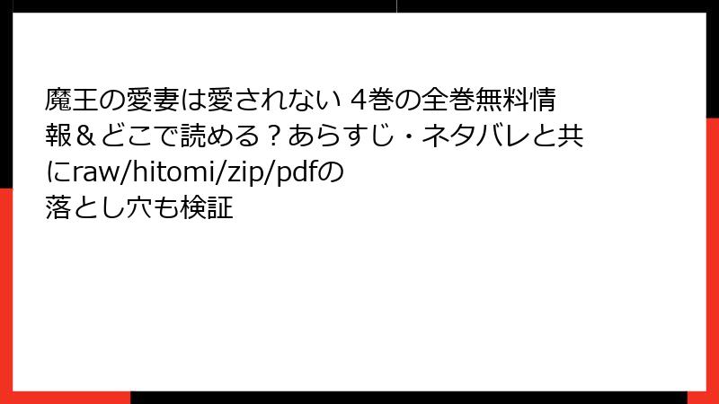 人気のファンタジーロマンスコミック『魔王の愛妻は愛されない』を、海賊版サイトで無料で読もうとする人は少なくありません。しかし、raw、hitomi、zip、pdf、漫画バンクなどの違法サイトを利用することは、法的・セキュリティ面で深刻な危険を伴います。この記事では、これらのリスクを詳しく解説し、なぜ避けるべきかをブログ形式でまとめます。海賊版の魅力に惑わされず、安全に楽しむことをおすすめします。