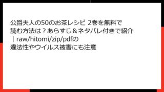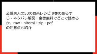 公爵夫人の50のお茶レシピ 公爵夫人の50のお茶レシピ 9巻のあらすじ・ネタバレ解説!全巻無料でどこで読めるか、raw・hitomi・zip・pdfの注意点も紹介