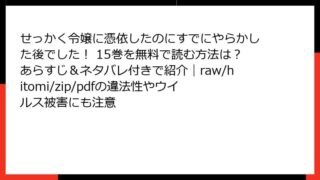 せっかく令嬢に憑依したのにすでにやらかした後でした! せっかく令嬢に憑依したのにすでにやらかした後でした! 29巻はどこで読める?全巻無料の方法・あらすじ・ネタバレとraw/hitomi/zip/pdfの違法性も比較調査