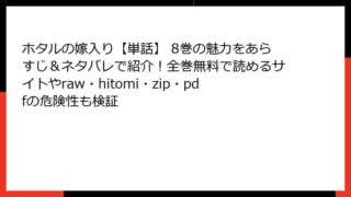 ホタルの嫁入り【単話】 ホタルの嫁入り【単話】 19巻はどこで読める?全巻無料の方法・あらすじ・ネタバレとraw/hitomi/zip/pdfの違法性も比較調査