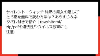 サイレント・ウィッチ 沈黙の魔女の隠しごと サイレント・ウィッチ 沈黙の魔女の隠しごと 2巻はどこで読める?全巻無料の方法・あらすじ・ネタバレとraw/hitomi/zip/pdfの違法性も比較調査