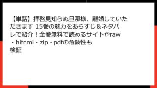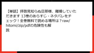 【単話】拝啓見知らぬ旦那様、離婚していただきます 【単話】拝啓見知らぬ旦那様、離婚していただきます 30巻を全巻無料で楽しむ方法とは?どこで読めるか、あらすじ・ネタバレ、raw/hitomi/zip/pdfの違法性も確認