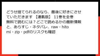 どうせ捨てられるのなら、最後に好きにさせていただきます 【連載版】 3巻 あらすじ詳細 この記事では、人気コミック「どうせ捨てられるのなら、最後に好きにさせていただきます 【連載版】」の3巻について、詳細なあらすじをブログ形式で解説します。...